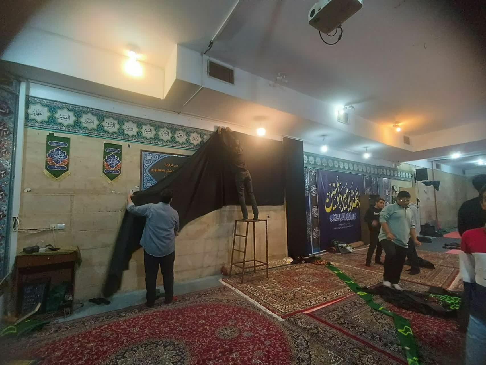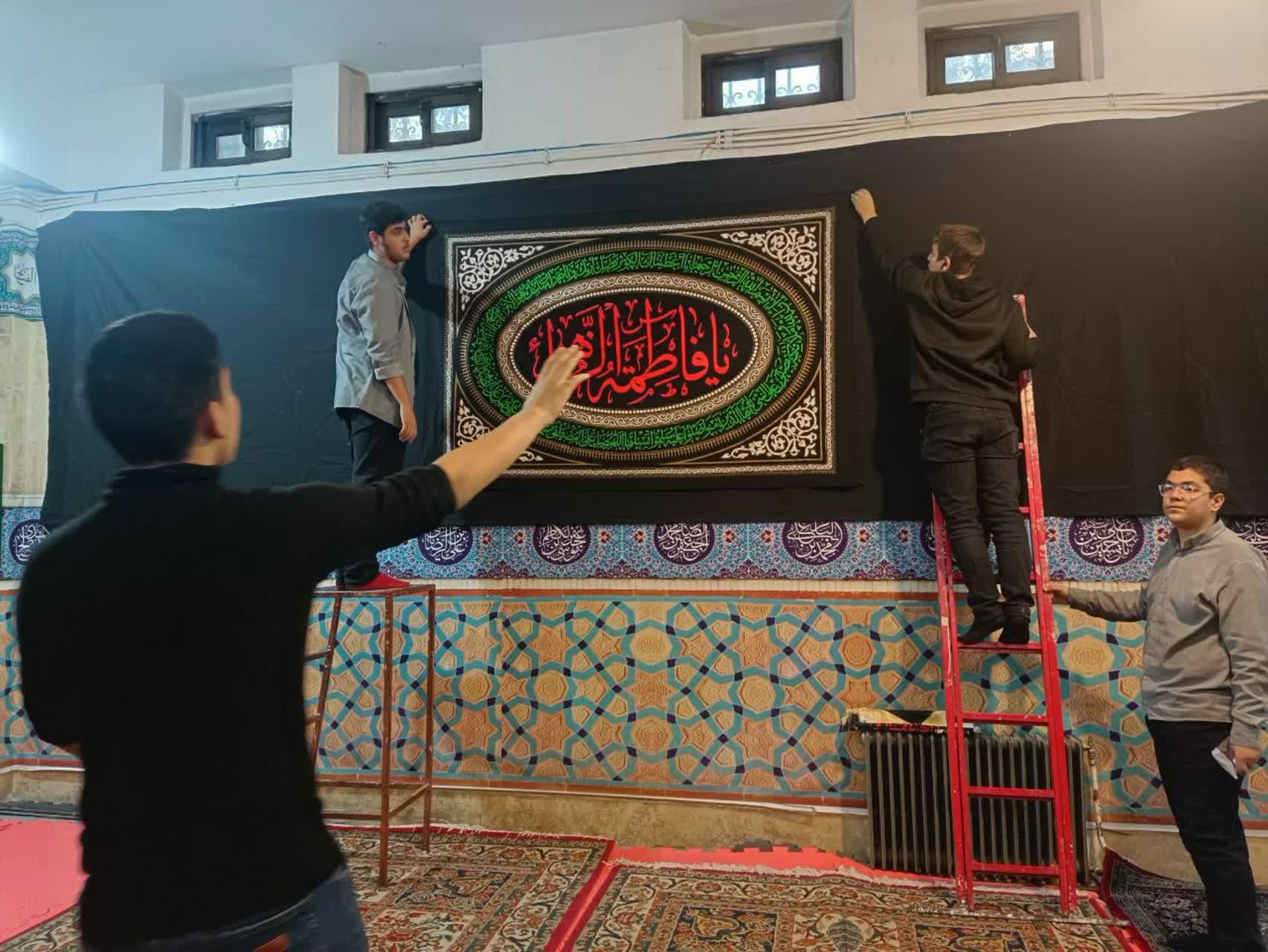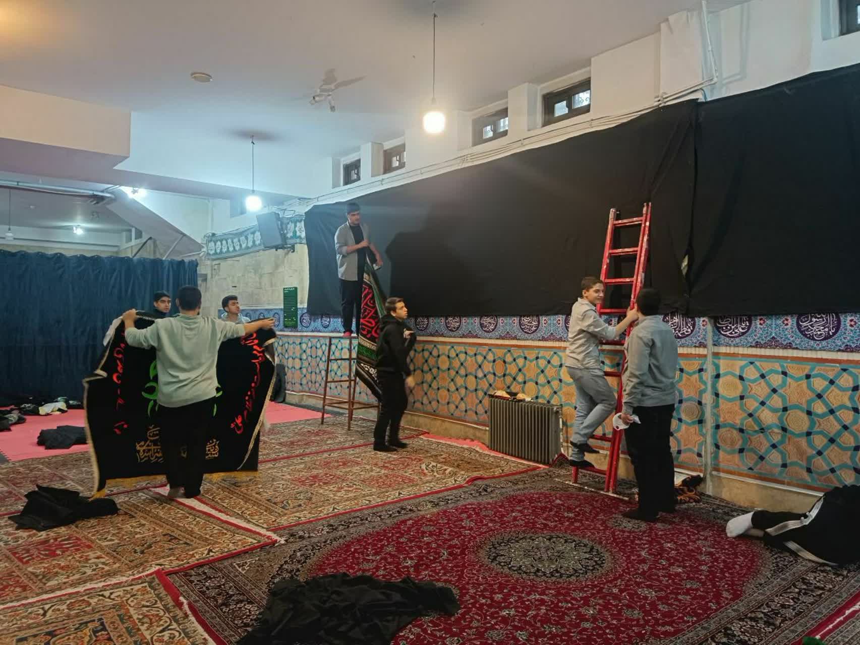 فضاسازی و آماده سازی نمازخانه جهت برگزاری مراسم عزاداری فاطمیه توسط دانش آموزان.