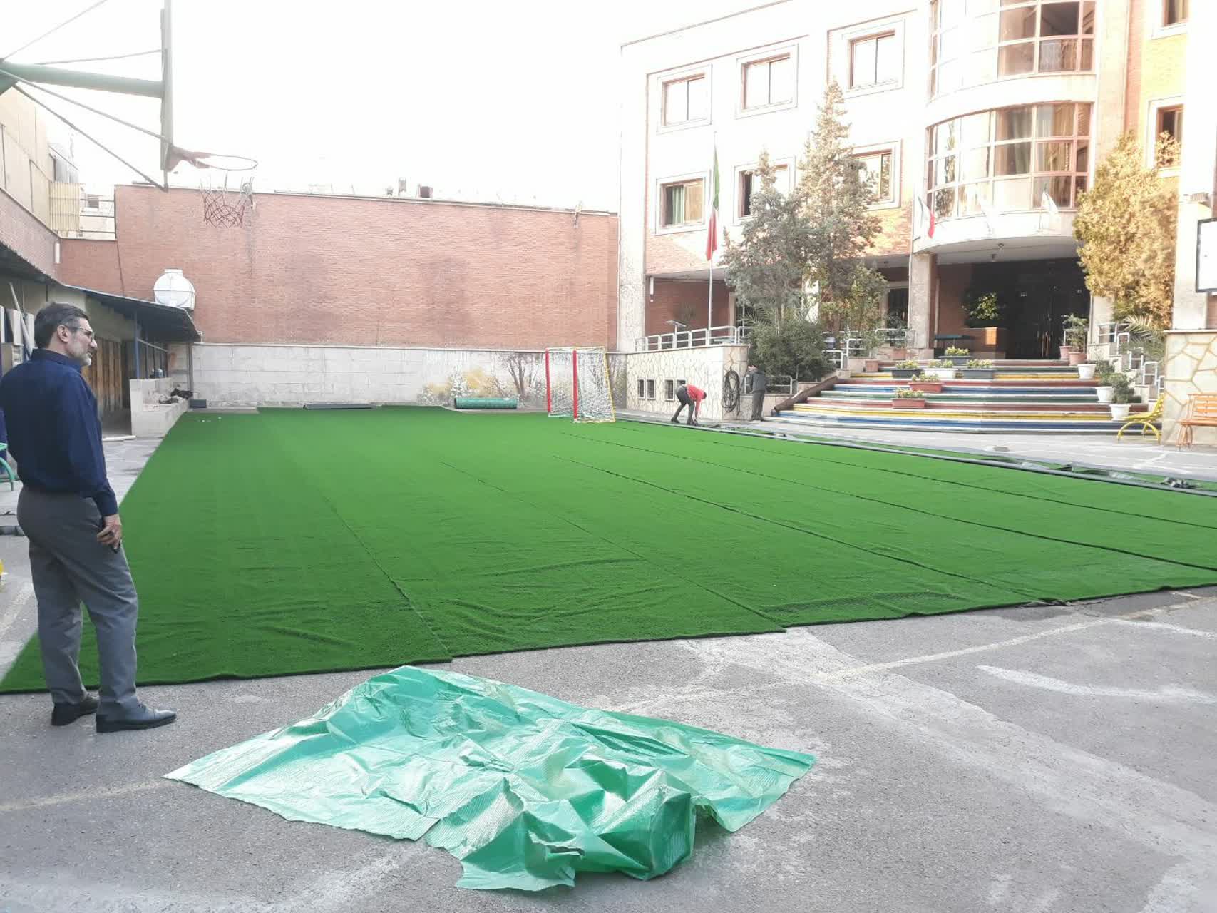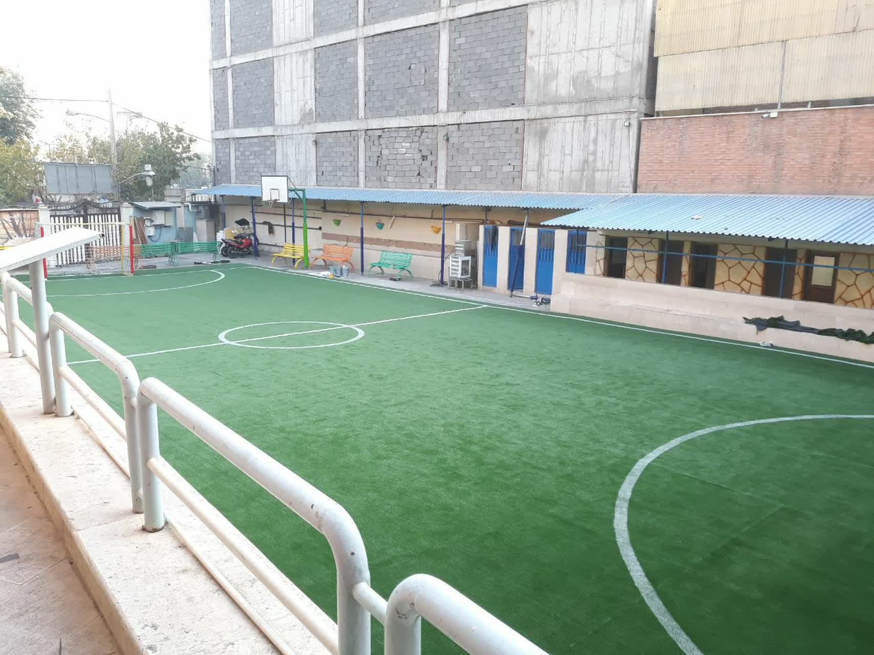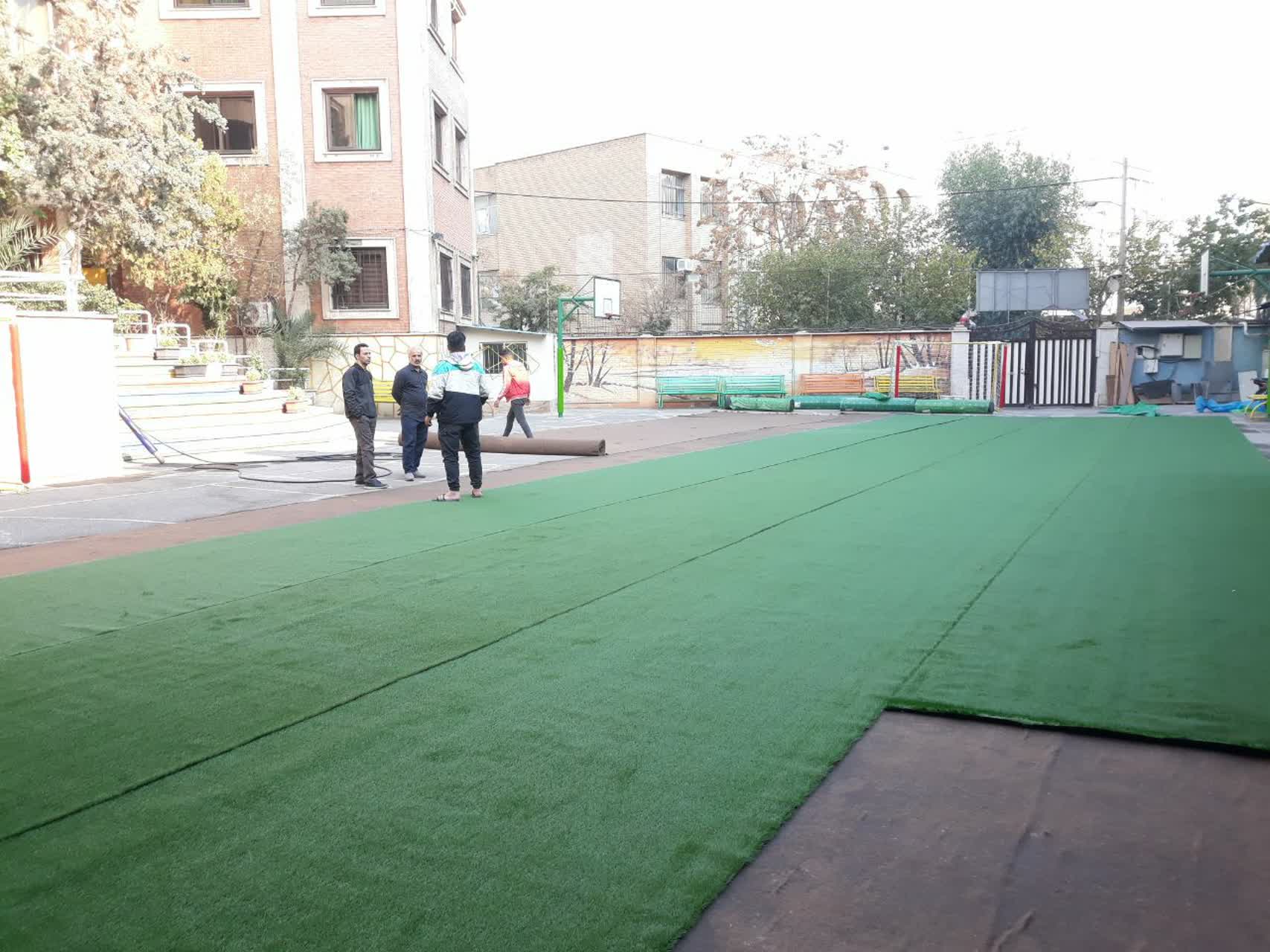 اماده سازی حیاط جهت چمن مصنوعی و ایمن سازی دروازه ها و فضای حیاط جهت جلوگیری از حوادث.
