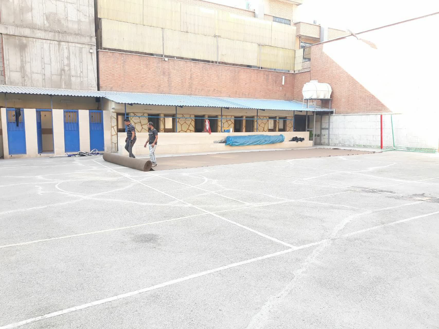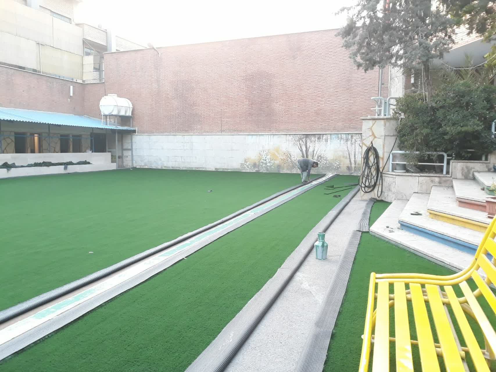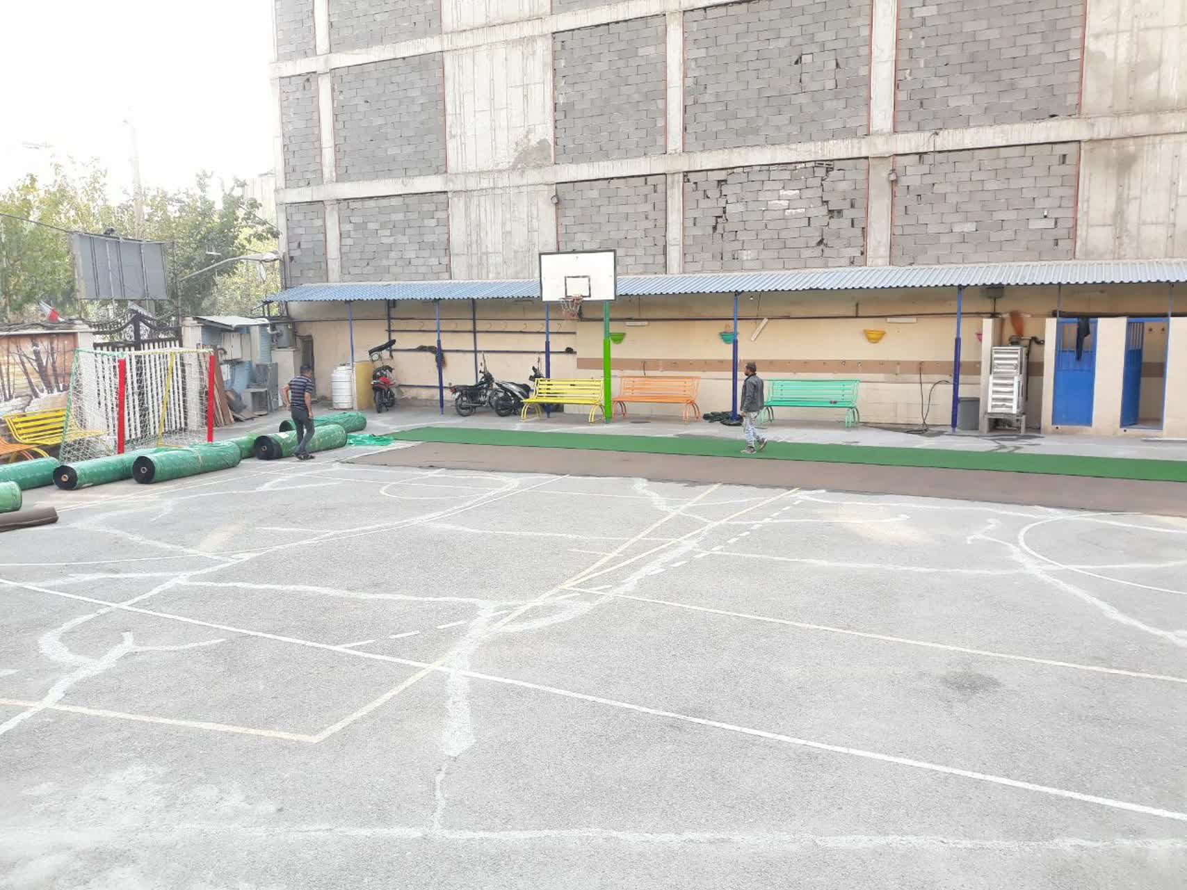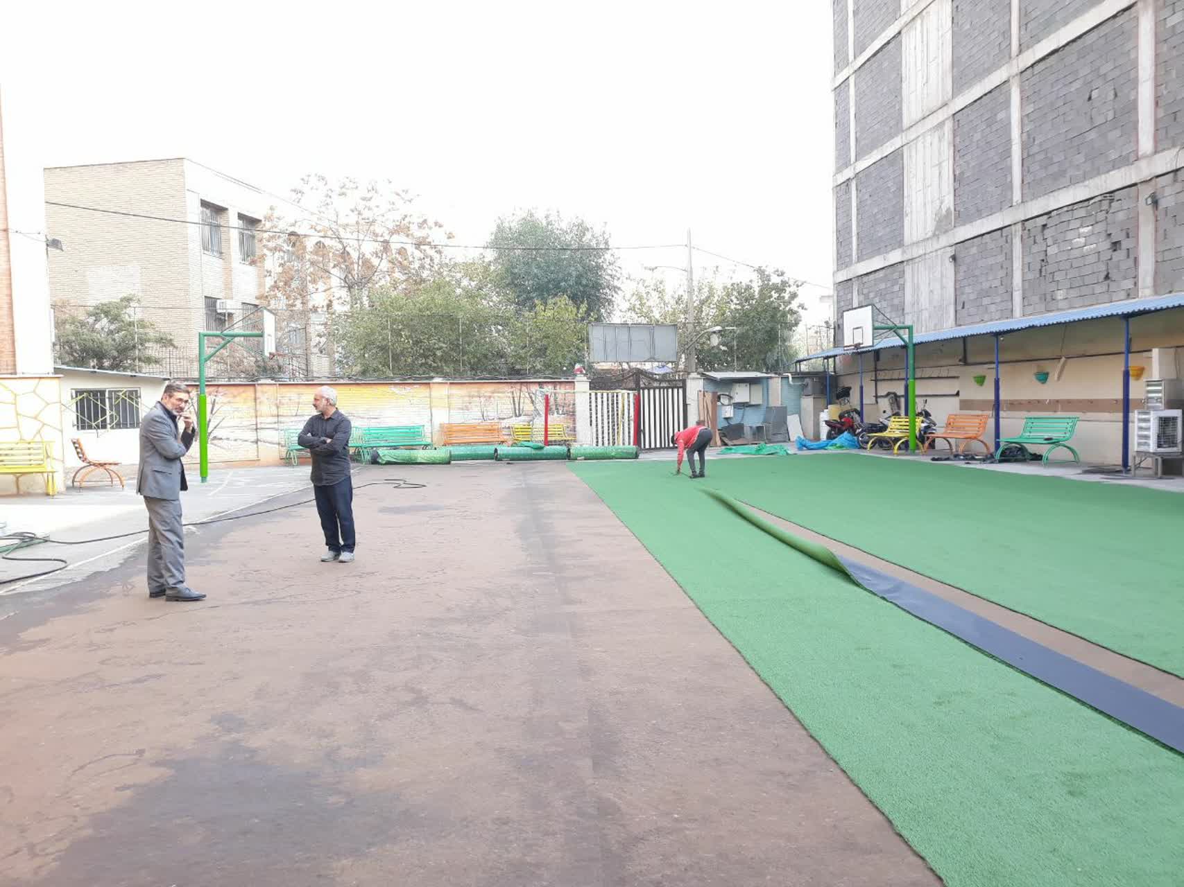 اماده سازی حیاط جهت چمن مصنوعی و ایمن سازی دروازه ها و فضای حیاط جهت جلوگیری از حوادث.